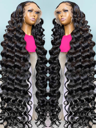 300% Density 13x6 Hd Transparent Loose Deep Wave Lace Frontal Wig Brazilian 40 46 Inch 13x4 360 Curly Lace Front Wigs For Women